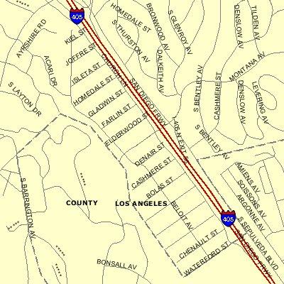 In 1954 the city of Los Angeles began construction of three overpasses of the 405 freeway on Ohio Avenue, Sunset Boulevard, and Casiano, now Getty Center Drive. In 1960 the freeway was completed all the way through the Sepulveda Pass. 1969 was the year the Homeowners’ Association was formed. At that time residents decided to change the name of the neighborhood from the Ratteree Tract to Brentwood Glen. The southbound on-ramp and sound wall were created in 1975-76. After a bus accident in 1994 the Waterford off-ramp was closed.