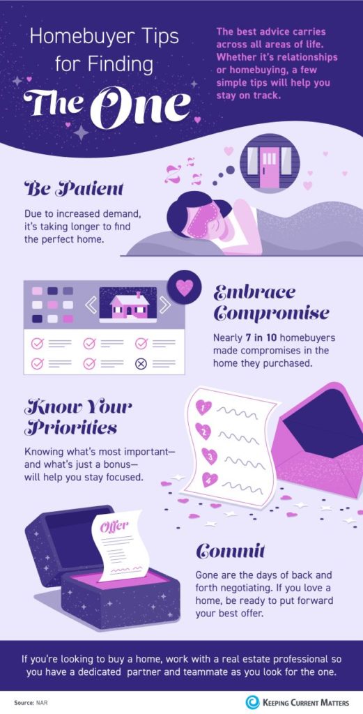 - Because of increased demand, you’ll need to be patient and embrace compromises during your search. Then, once you’ve fallen in love, commit by putting your best offer forward.